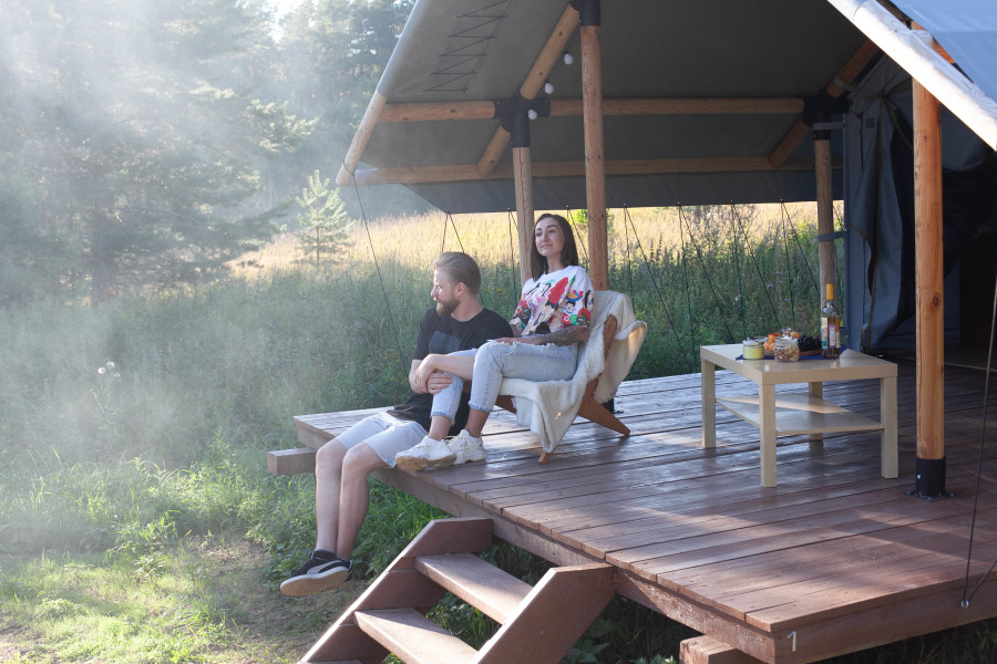| Тент-хаус 2-местный DBL без удобств | 16 кв.м. | 2 чел. | Мебель (вешалка, зеркало, кровать двуспальная, стол, стулья), Мини-кухня, Оборудование (мини-холодил... | |